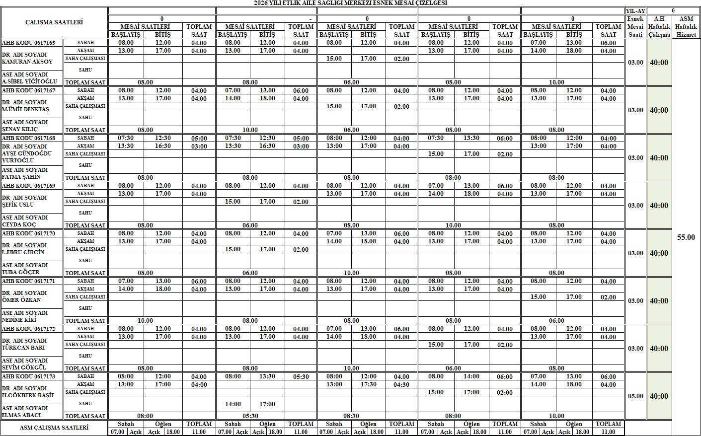 Doktorların Mesai Çizelgesi: